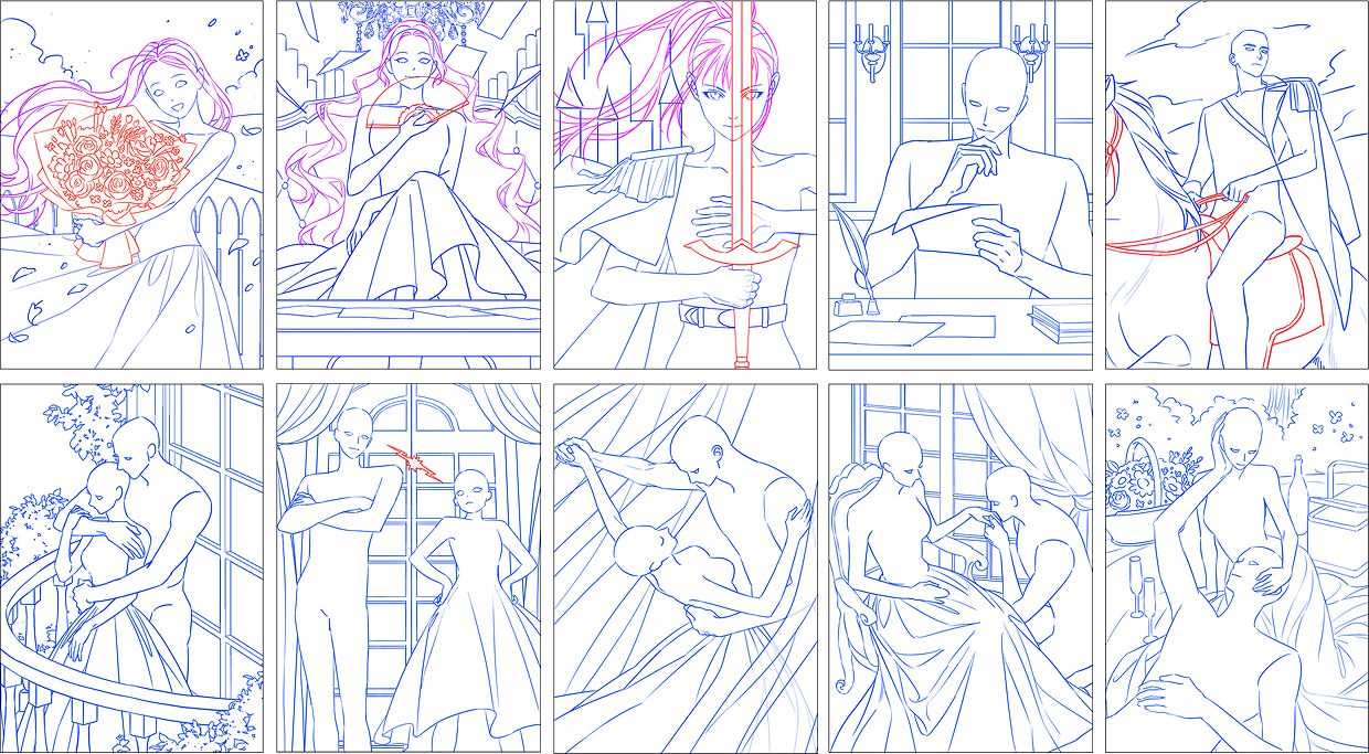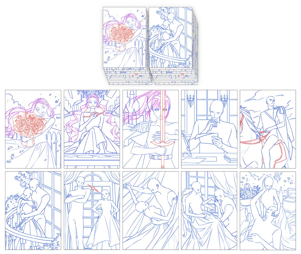 코바 작가와 함께 1인 트레이싱 틀 10종 + 2인 트레이싱 틀 10종, 총 20종의 트레이싱 틀를 준비했습니다. 캐릭터 구도와 배경까지 살려 완성도가 높은 20종의 로판 표지를 위한 트레이싱 틀를 통해, 더 멋진 그림을 그려보세요.