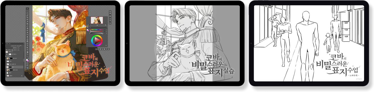 <전지적 독자 시점> 대만판, <재혼황후> 대만판, <눈 먼 공작과 약혼했다>, <나쁜 시녀들> 외 150건 이상의 웹소설 표지 작업 경력의 작가 코바에게 표지 일러스트의 모든 것을 배워보세요.👩🎨