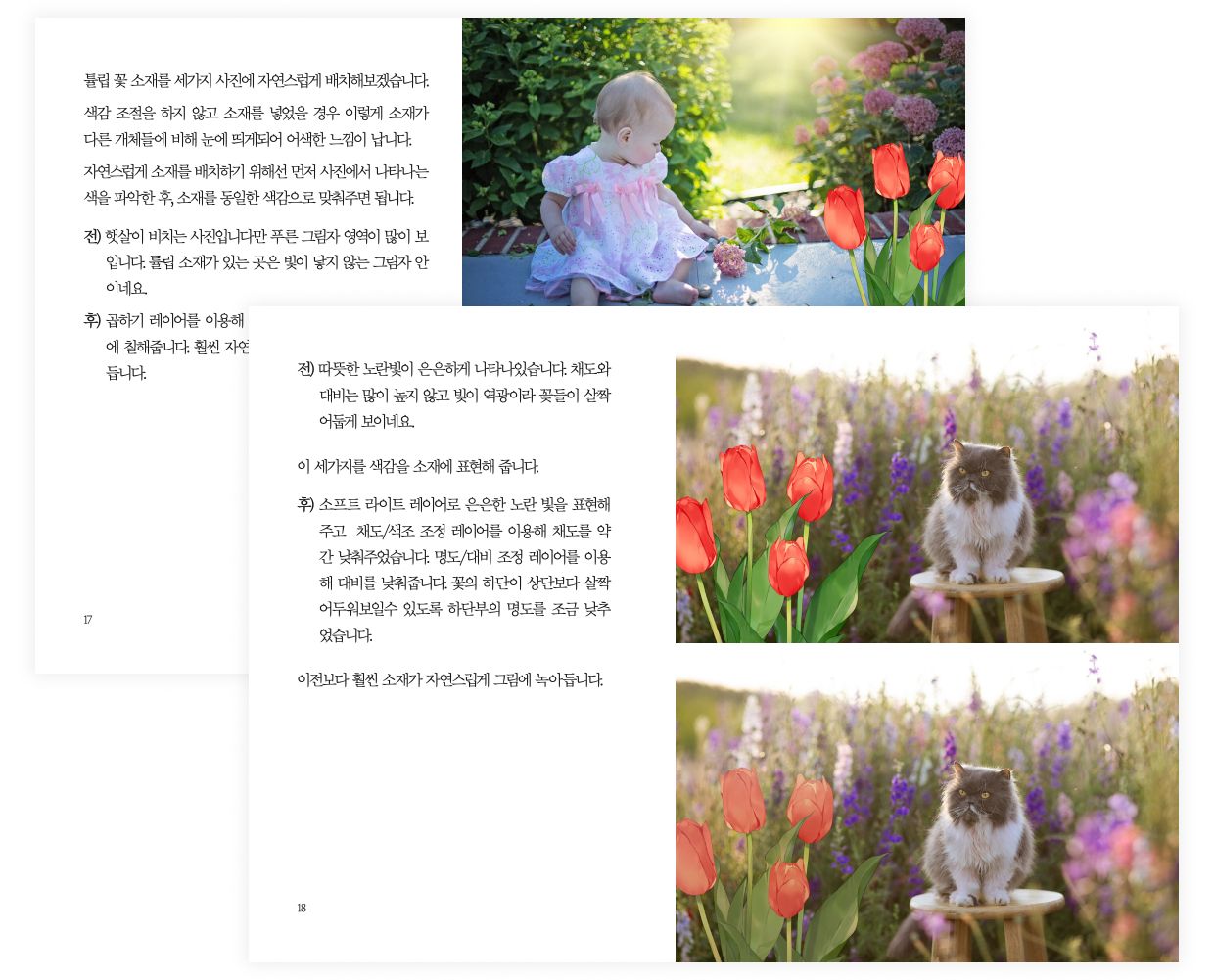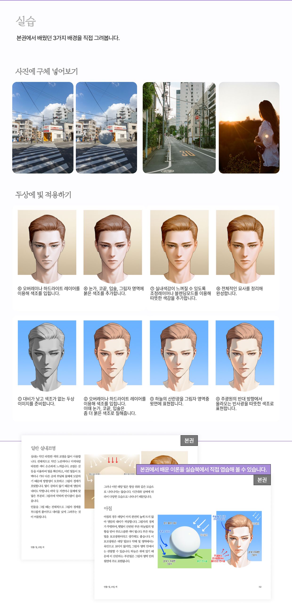 여기서부터는 다른 곳에서 배워야하나? 이런 걱정은 NO! 얼굴부터 구도, 배경, 연출, 보정, 디테일까지 모두 한번에 담아냈습니다. 본권+실습북+노하우북의 모든 자료를 따라가다보면 작가의 노하우를 나의 것으로 만들 수 있어요.