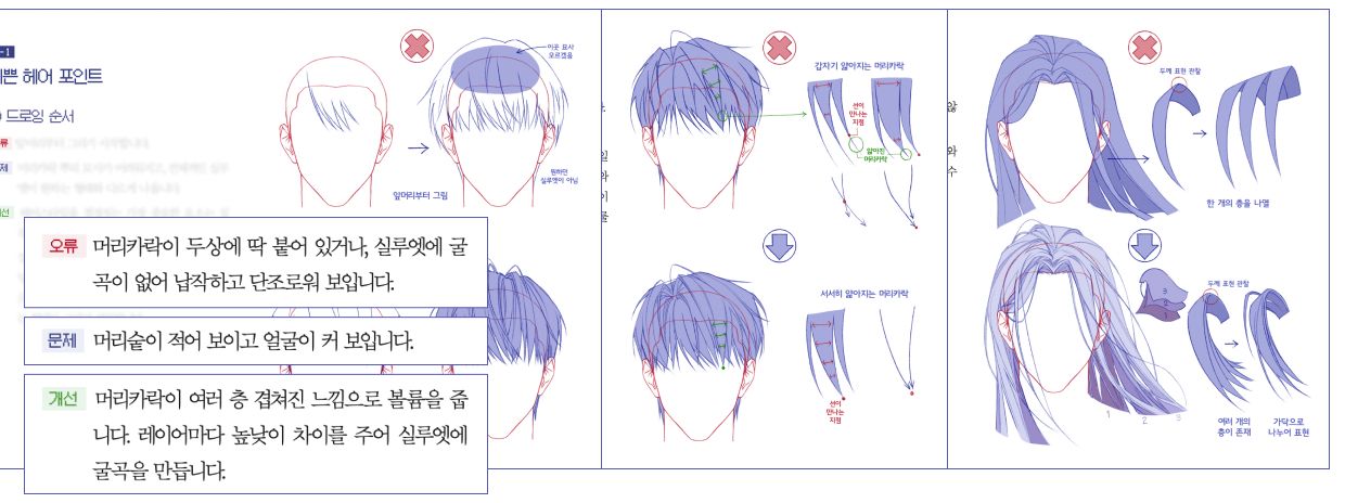 남자는 머리빨…! 이라는 말 들어보셨죠. 가르마, 머리카락 굵기, 리듬감, 두께감, 층, 깊이감 등 자연스럽고 멋진 머리 표현을 위한 표현 기법을 함께 공부해보는 파트입니다.