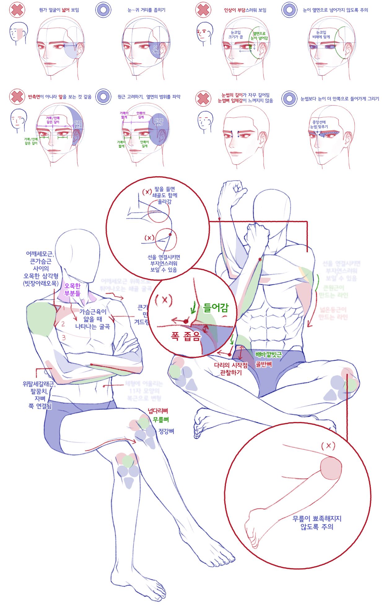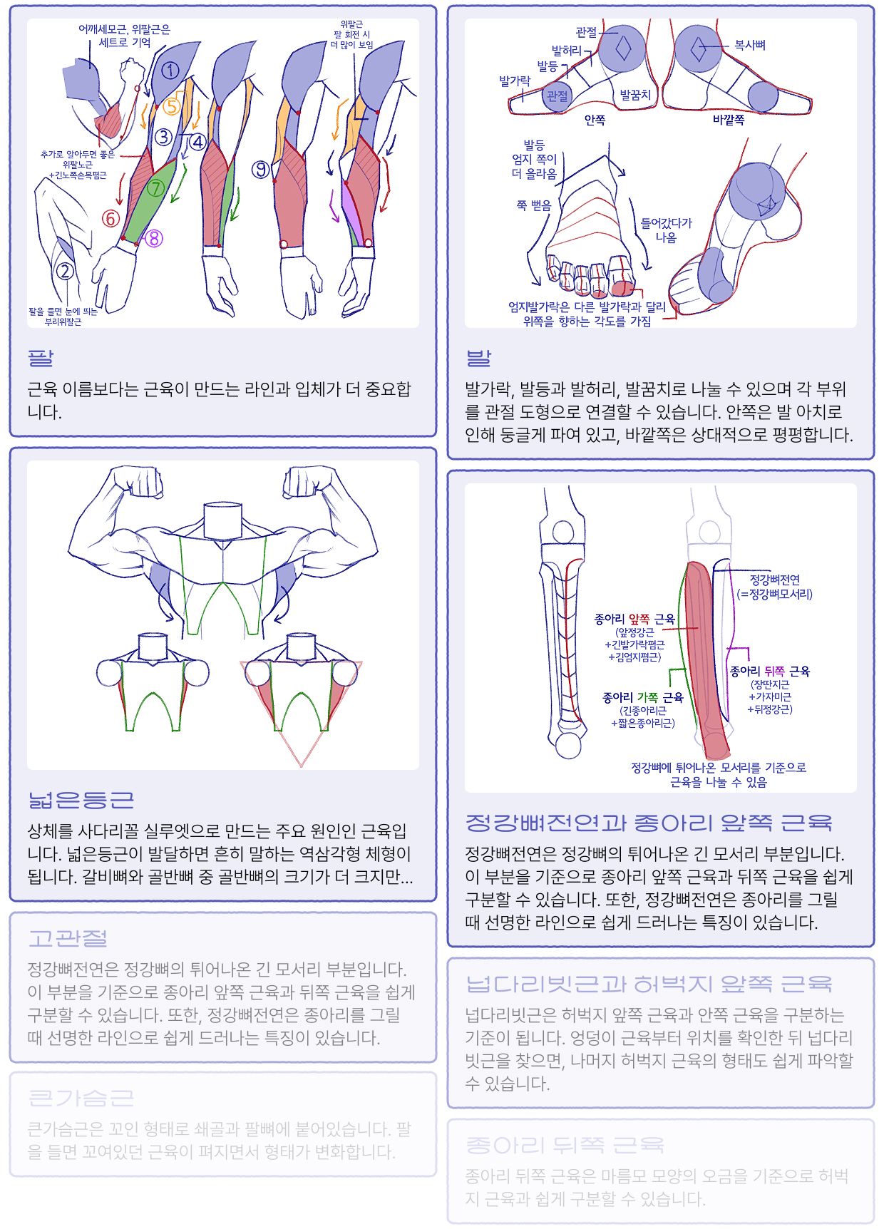 해부학은 어려울거라는 편견을 버리세요! 인체와 해부학 지식을 바탕으로 우리가 지금까지 자주 틀리던 부분을 짚어줍니다. 글 보다는 그림을 가득 담아 초보자도 쉽게 이해할 수 있도록 구성했습니다. 지금 당장 남캐를 그리지 않더라도, 한권씩 보관해두고 두고두고 공부하는 자료가 되길 바라며 꼼꼼하게 집필했어요.