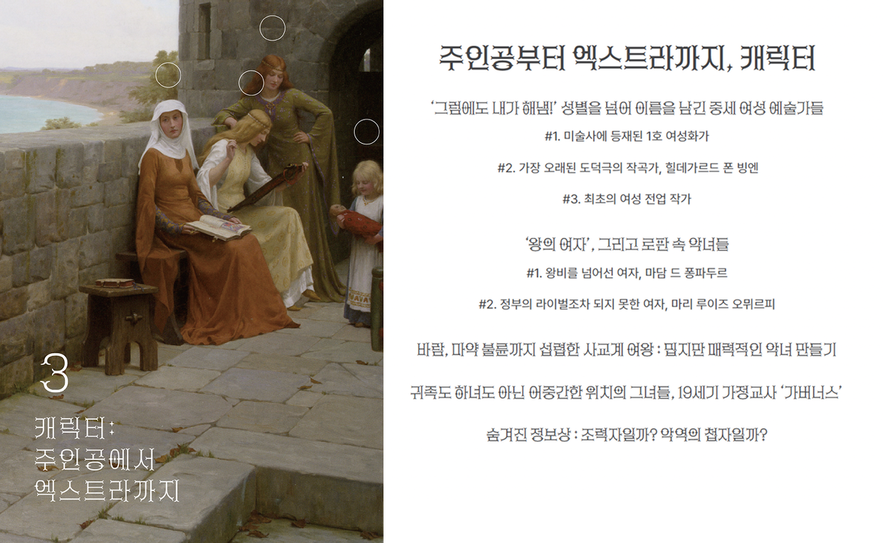 서사가 완성되었다면 캐릭터를 조형해야 하는 법! 악녀, 가정교사 가버너스, 정보상 등... 쉽게 구하기 어려운 정보들로만 모아 준비했습니다.이들의 이야기를 모티프로 매력적인 캐릭터를 만들 수 있답니다.