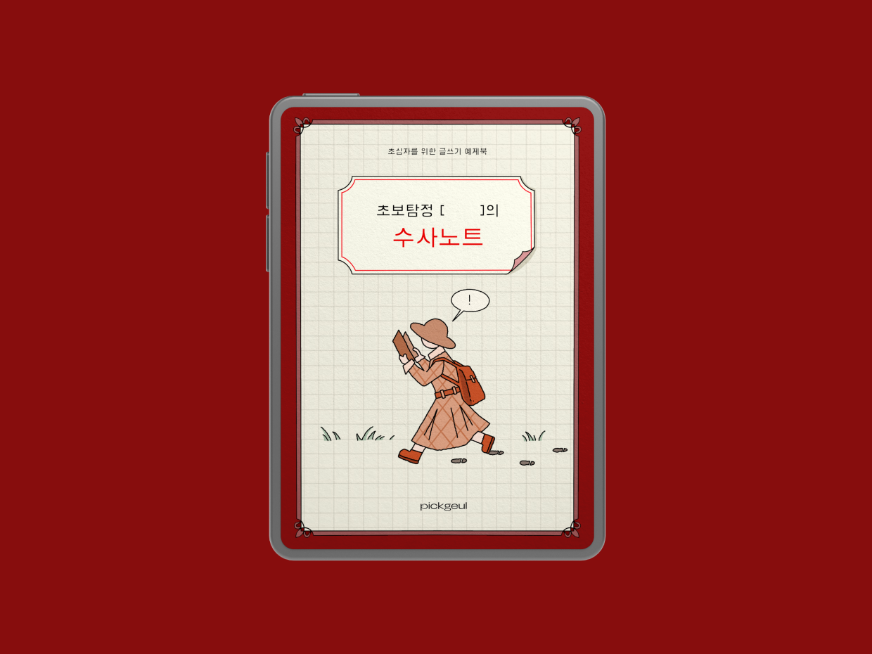 아직 글쓰기 여정이 걱정되는 여러분을 위해 선배 탐정(작가님)이 작성한 메모 노트를 함께 드립니다. 다른 탐정의 수사 노트를 훔쳐보는 것 또한 중요한 일이기 때문이죠. 내 글과 비교해서 읽는 재미를 누려보세요. (*선배 탐정역은 이번 콘텐츠의 집필을 맡아주신 그누 작가님께서 진행해주셨습니다. 그누 작가님의 예시 글쓰기를 참고하여 더 쉽고 부담없이 글쓰기 연습을 시작해보세요!)