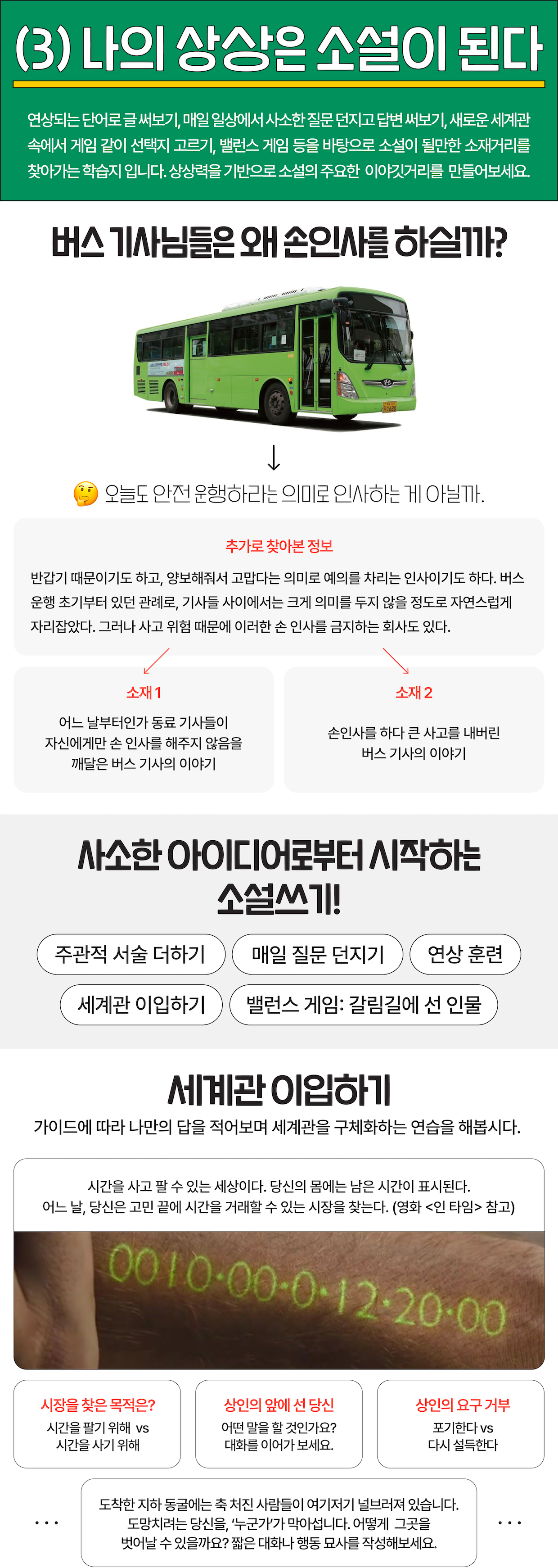 1. 스토리 창작을 위한 아이디어 2. 신관점 고전쓰기 3. 나의 상상은 소설이 된다