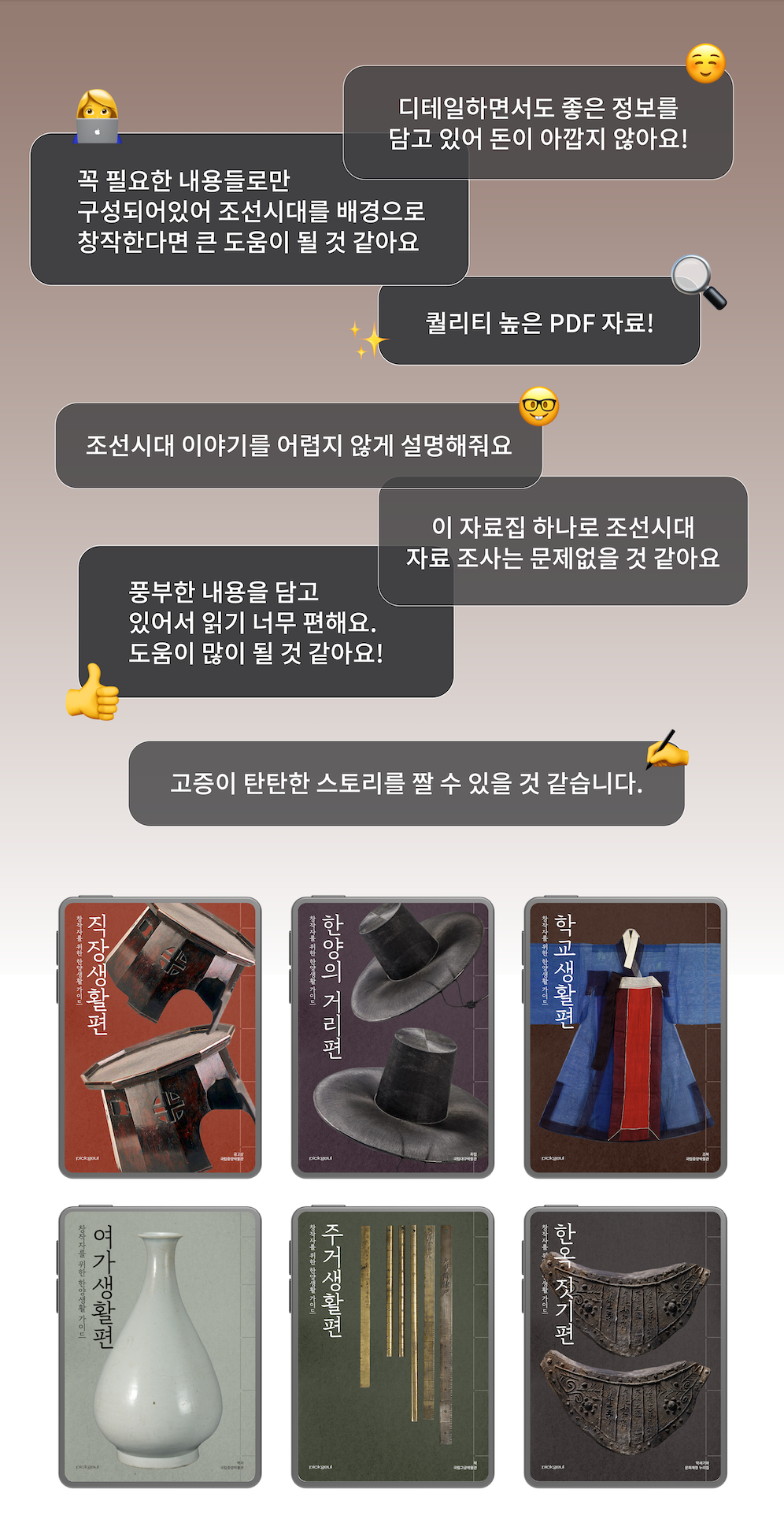 1️⃣ 한옥전문가가 직접 집필한, 인터넷 검색으로 찾을 수 없는 자료를 만듭니다. 역사와 옛 이야기는 단순히 혼자만의 고문헌 탐색으로는 부족합니다. 전문지식이 담긴 콘텐츠로 걱정없이 고증에 사용할 수 있습니다.