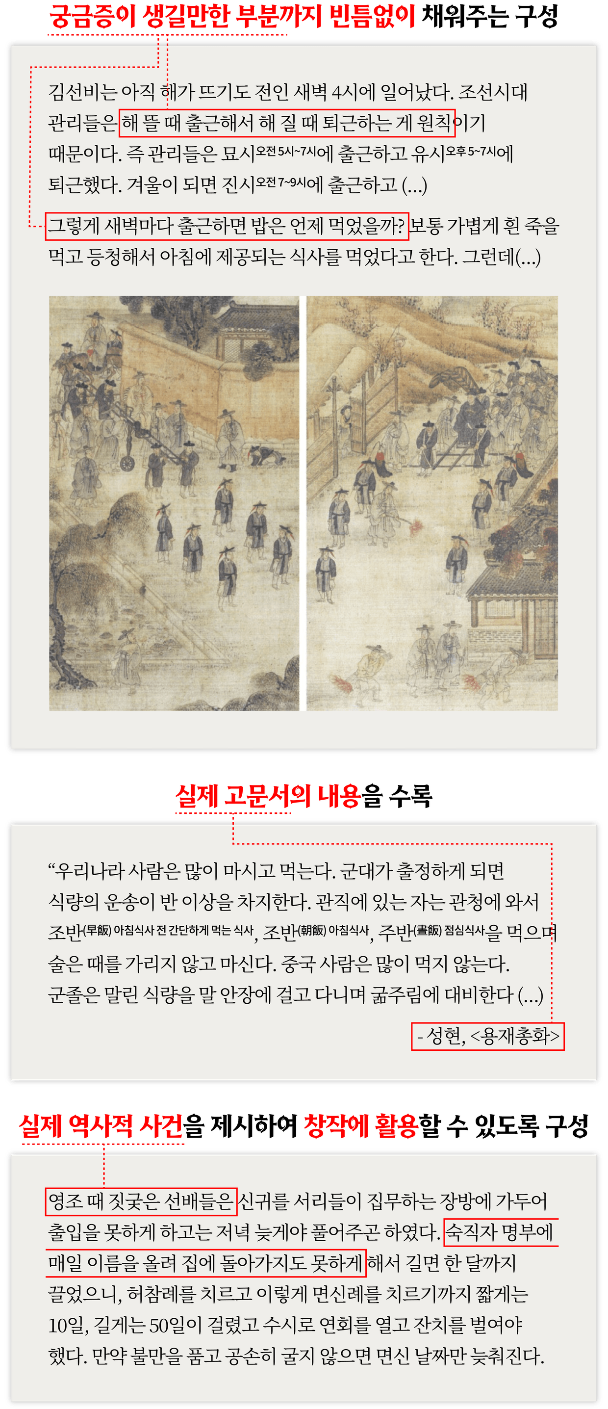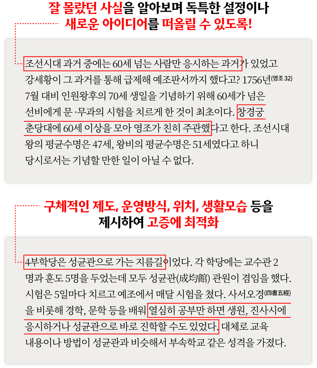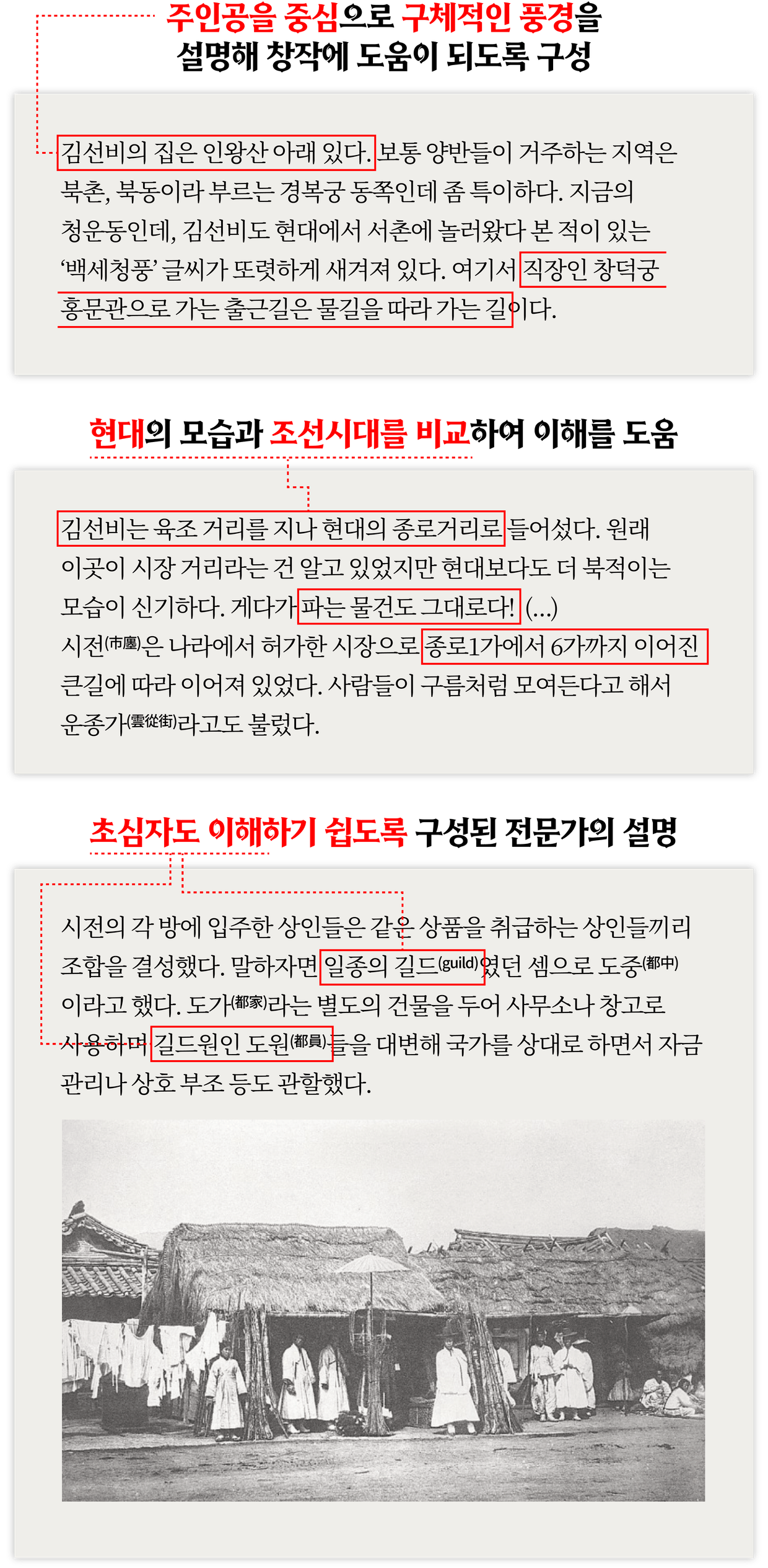 규장각, 도화서, 육조거리, 피맛길 등 창작물 속에서 꼭 등장하는 공간들을 바탕으로