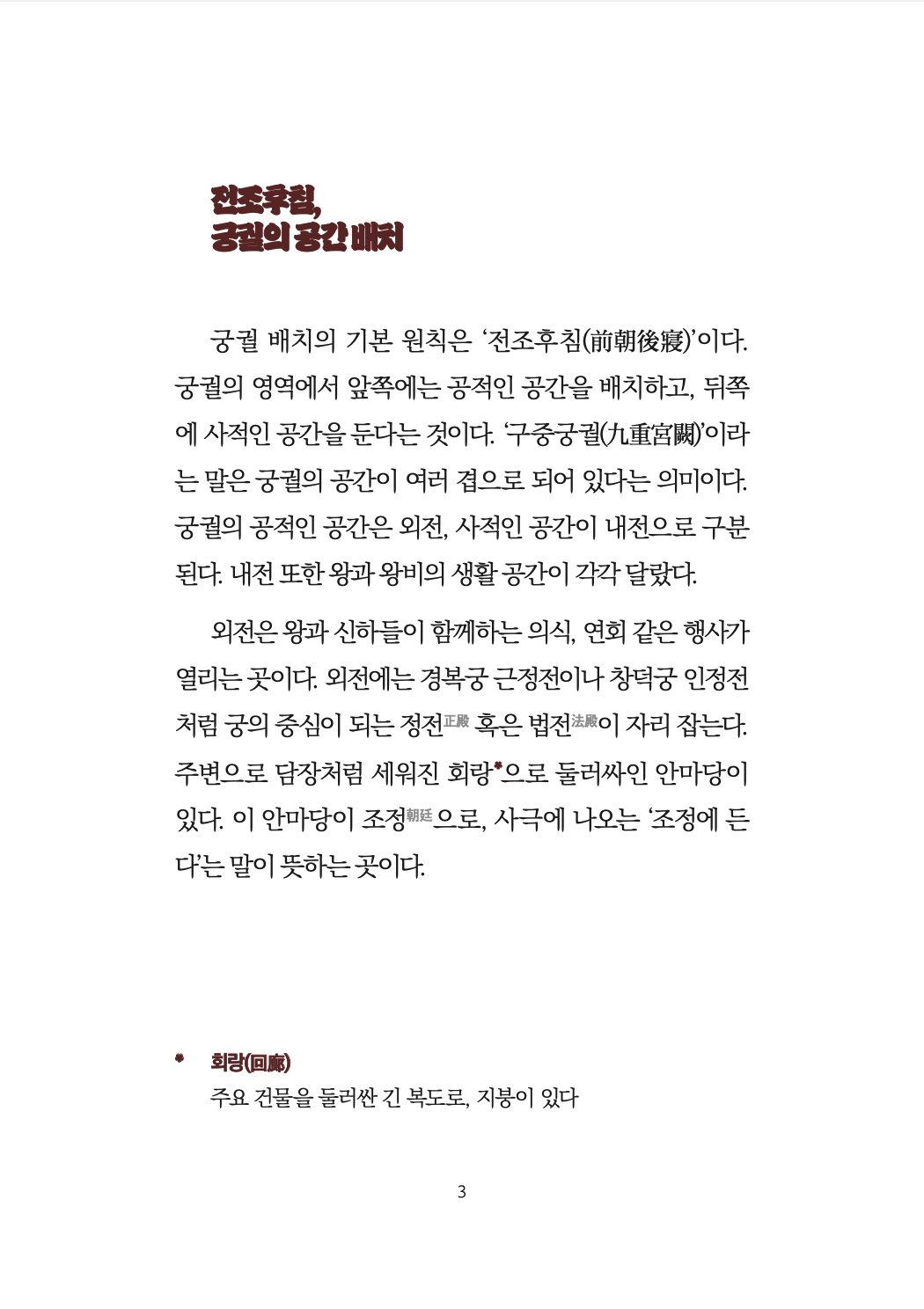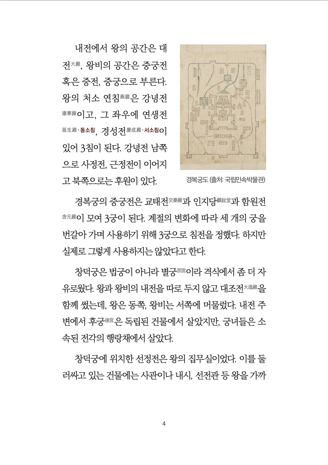 궁궐의 공간 배치, 왕의 집무실, 왕비의 공간, 후궁의 궁중생활 등의 내용이 담겨있습니다.